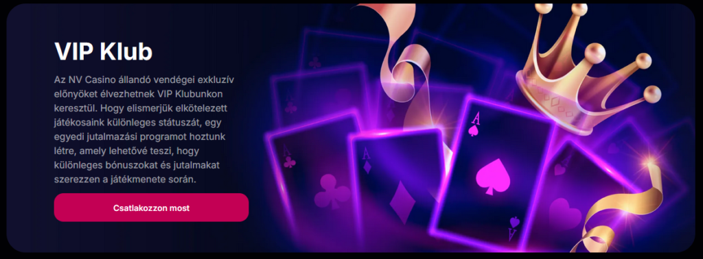 Az NV kaszinó hűségrendszerében akkor tudsz feljebb lépni, ha minél többet játszol. A program összesen 59 szintből és több kiemelt státuszból áll, ahol a haladást a játék során gyűjtött pontok határozzák meg. Minél magasabb rangot ér el egy játékos, annál komolyabb előnyöket élvezhet. Időnként egyedi NV promóciós kód is érkezhet a magasabb szintű tagoknak, ami exkluzív hozzáférést biztosít speciális ajánlatokhoz.