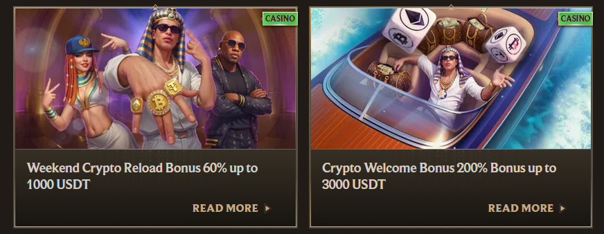 A kriptó alapú bónuszok külön kategóriát képeznek. Ezek a bónuszok akkor érhetőek el ha a felhasználó kripto valutát használt befizetéskor. Ezek az ajánlatok tehát nem adottak minden felhasználónak. Specifikus feltételek: