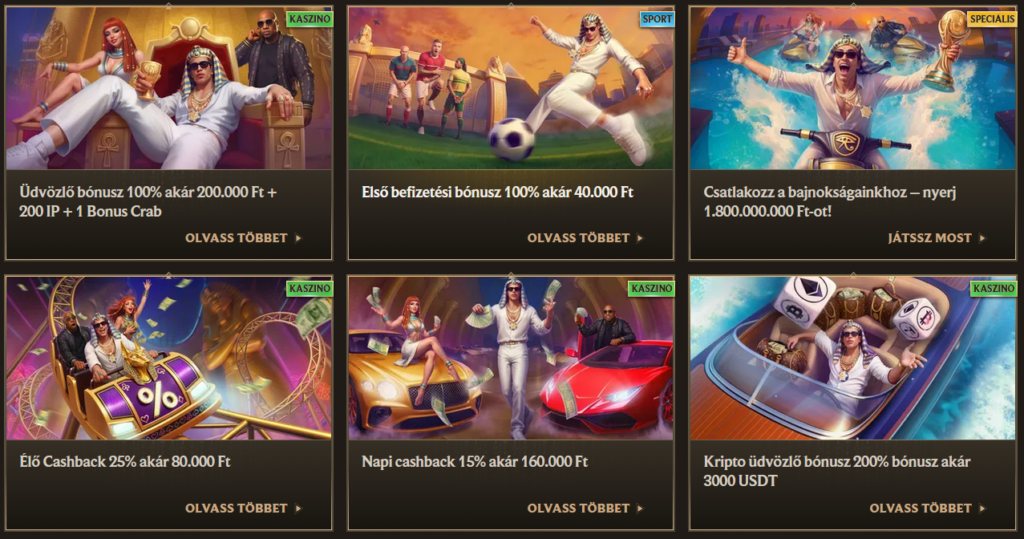 A casino oldalán játékok széles választéka érhetőek el, mint például a nyerőgépek (slotok), élő osztós játékok, asztali játékok vagy az instant játékfutamok. A magyar játékosoknak is könnyű lesz használni a platformot ugyanis a ki és befizetések egyszerűek és forintban is elérhetőek.