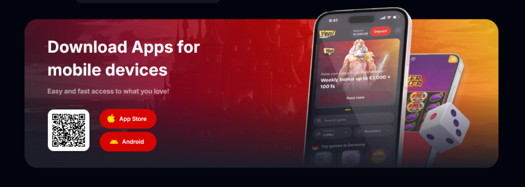 A kaszinó mobil eszközökön is könnyen elérhető. A Yep app kompatibilis Android és iOS telefonokkal is, de csapatunk tapasztalatai alapján a weboldal készítői kiváló munkát végeztek, mert a felület böngészőből is elérhető és kényelmesen használható minden eszközön. A menürendszer mobilon is kategóriákra bontott. A játéklobby és a mobil nyerőgépek online használata egyszerűen, görgetéssel és szűrőkkel is kezelhető.