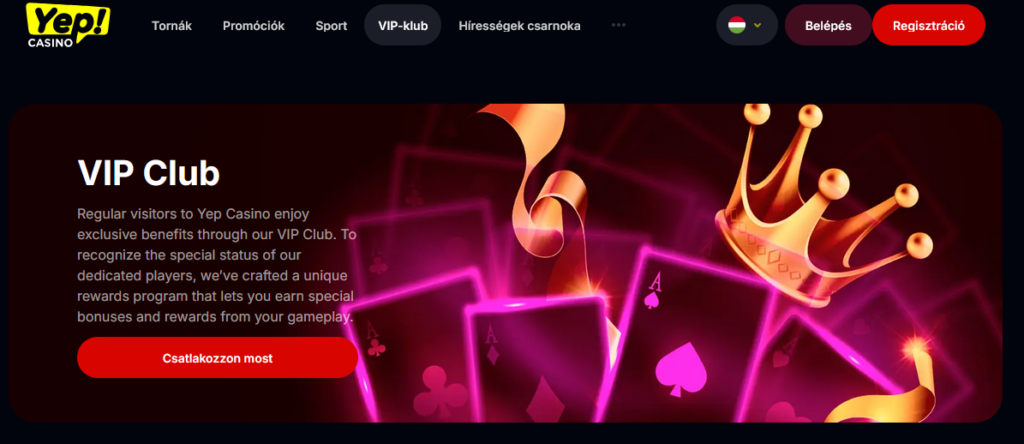 A VIP nem egy egyszeri befizetéshez kötött státusz, hanem kifejezetten az aktív játékosokat hivatott megjutalmazni. Ez az opció tehát hosszabb távú használat nyomán válik elérhetővé. A hűségprogramban esetenként Yep promóciós kód aktiválja az ajánlatot, de összességében véve azért nem ez a jellemző.