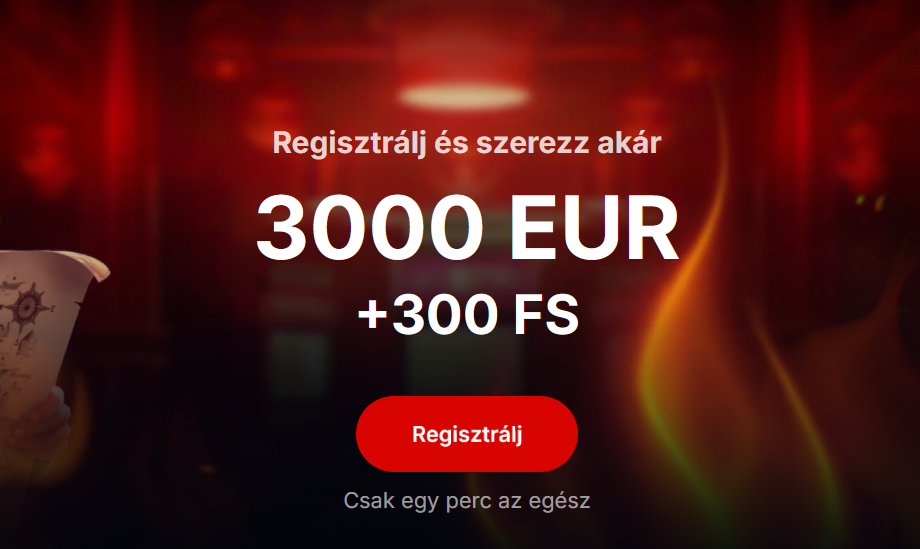 | Első | 100% | 300 000 HUF | 100 | 3000 HUF | 40× | 5 nap |